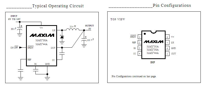 MAX738ACWE absolute maxmum ratings: (1)V+: +18V, -0.3V; (2)LX: (V+ - 21V) to (V+ + 0.3V); (3)OUT: ±25VSS, CC; (4)SHDN: -0.3V to (V+ + 0.3V); (5)Peak Switch Current (ILX): 2A; (6)Reference Current (IREF): 2.5mA; (7)Continuous Power Dissipation: (TA = +70°C).